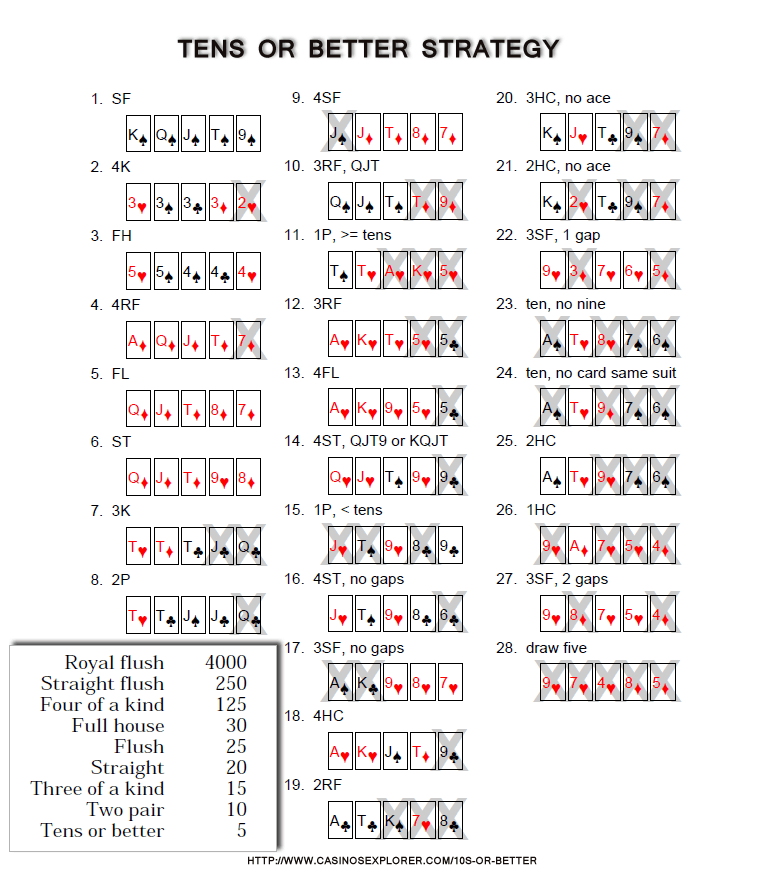 We have an image with Tens or Better strategy chart on what you should be holding in the standard game.